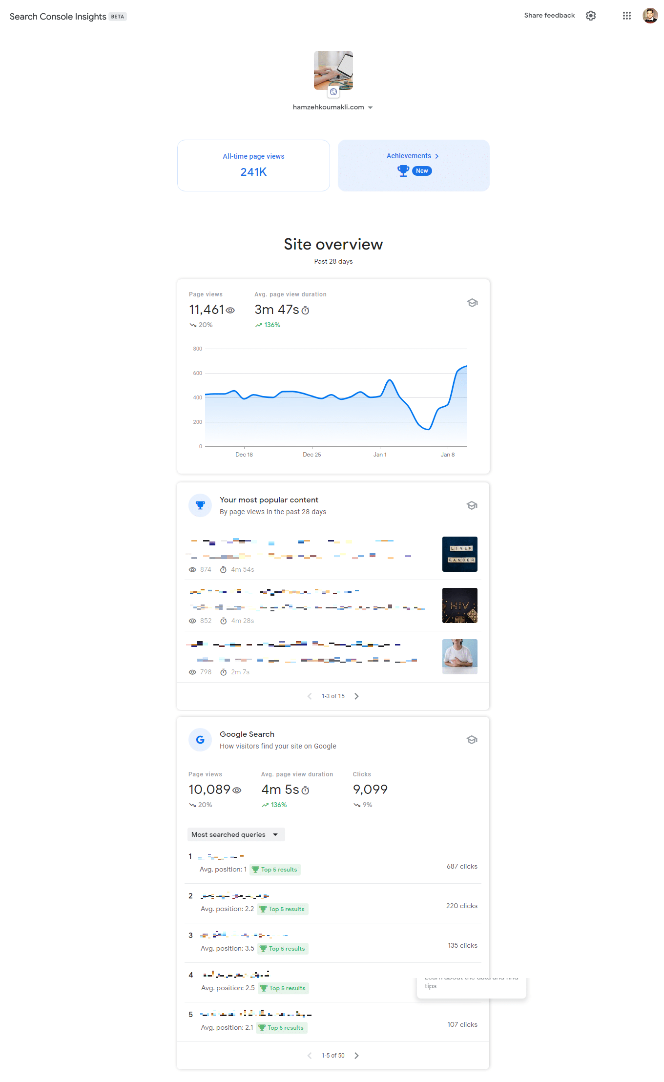 وأصبح بإمكانك الاطلاع على Search Console Insights