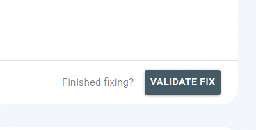 ومن ثم الطلب من GSC تثبيت إصلاح المشكلة الأساسية من خلال Validate Fix