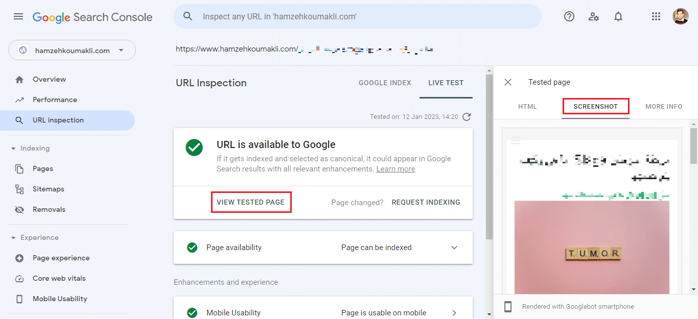 مررنا سريعاً على أداة URL Inspection Tool سابقاً. ولكن هناك الكثير من الميزات الأخرى التي يمكنك الاستفادة منها في هذه الأداة.