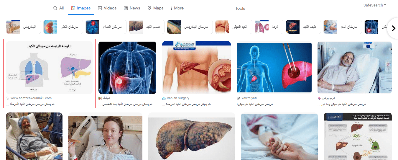 وعند البحث عن الموضوع وجدنا أن الصورة المتصدرة هي صورة توضيحية مميزة ذات تصميم جذاب ومختلف عن بقية الصور الموجودة في نتائج البحث. كما أنها مرفقة إلى جانب نتيجة الموقع في صفحة نتائج البحث العادية Web.