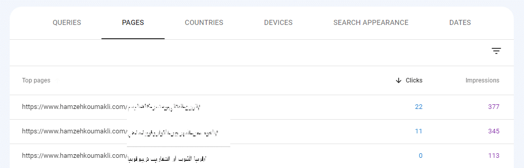 ومن هذا التقرير يمكنك معرفة الصفحات التي جلبت نقرات من خلال طريقة الأسئلة الشائعة، وبالتالي يمكنك تكرار الطريقة على الصفحات الأخرى.