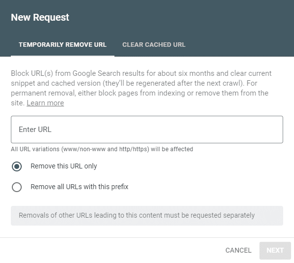 • لأنها أساساً غير هامة أو من غير المطلوب من محرك البحث أرشفتها. وهنا يمكنك إضافة وسم noindex,follow للصفحة لإصلاح المشكلة، أو يمكنك حذف الصفحة من خلال أداة Removal (سنتحدث عن ذلك بعد قليل).