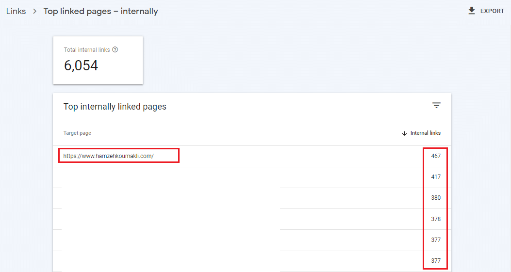 تكمن المشكلة في أن معظم أصحاب المواقع يتجاهلون الربط الداخلي، أو أنهم لا يعثرون على أداة SEO تنبّههم لأهميته. ولكن GSC يساعد كثيراً في ذلك، حيث يعرض تقريراً خاصاً بالربط الدخلي تحت اسم Links ثم Internal links: