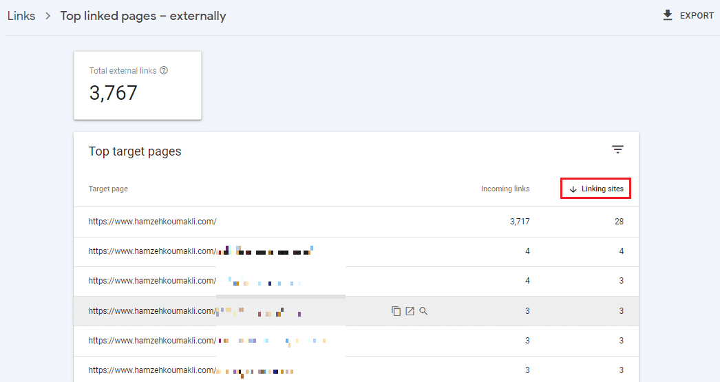 ملاحظة: ننصحك بترتيب هذه الصفحات حسب Linking Sites لأنها تعكس أهمية الصفحة أكثر من Incoming Links: