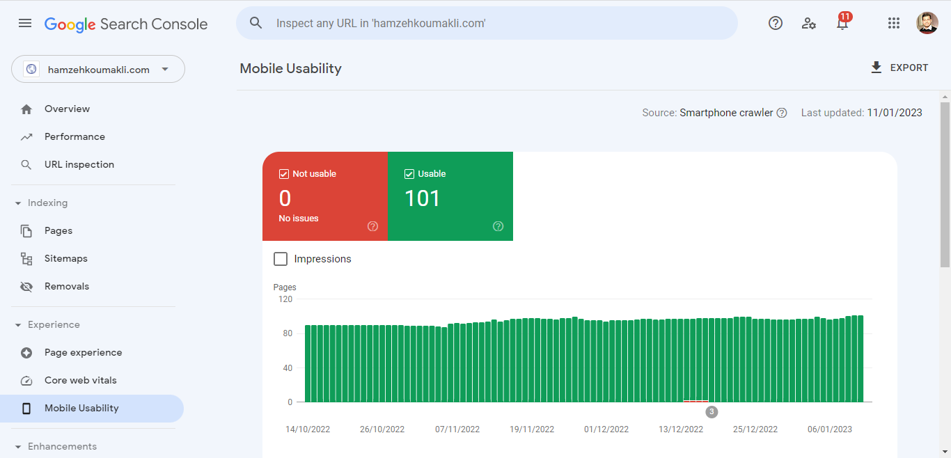 وكل هذا يعني أن محتوى موقعك وتصميمه وتجربة المستخدم UX يجب أن تكون كلها محسّنة لأجل أجهزة الموبايل. وفي GSC يمكنك معرفة فيما إذا كان موقعك مناسباً لهذه الأجهزة من خلال تقرير Mobile Usability