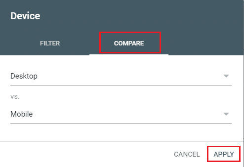 يمكنك أيضاً من خلال تقرير Performance مقارنة الـCTR بين أجهزة الحواسيب والموبايل. اضغط أولاً على New+ واختر Device