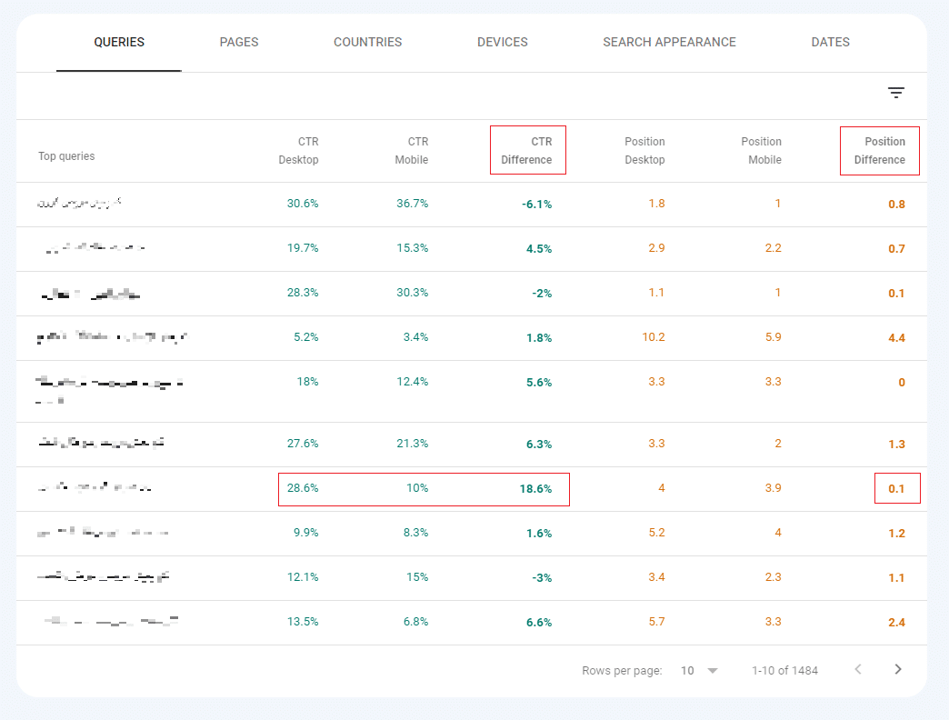 من الطبيعي وجود فروق بسيطة بين أجهزة الحاسوب والموبايل هنا. ولكن عليك الانتباه في حال وجود فرق كبير كما هو موضّح في الصورة السابقة. يمكنك ملاحظة عدم وجود فرق كبير في الـPosition، ومع ذلك هناك فرق هائل في الـCTR. ما السبب؟