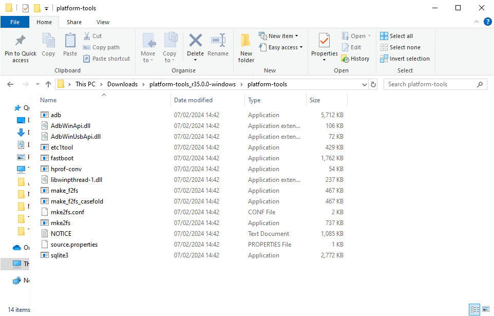 أولاً انسخ ملف APK إلى مجلد Platform Tools في حاسوبك.