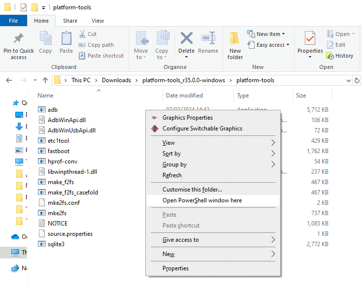 وهي عبارة عن أداة تعتمد على الأوامر النصية للتحكم بهواتف أندرويد عن طريق الحاسوب. عليك أولاً تنزيل حزمة أدوات SDK Platform Tools من الموقع الرسمي لنظام الأندرويد، هناك 3 خيارات للتنزيل حسب نظام التشغيل الذي تستخدمه. بعدها عليك فك حزمة الملف المضغوط الذي نزلته في أي مكان في الحاسوب وافتحه.