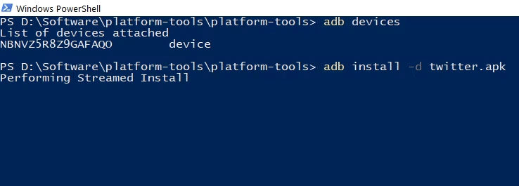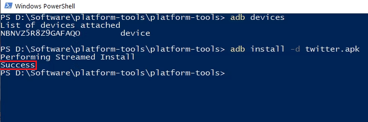 adb install -d twitter.apk