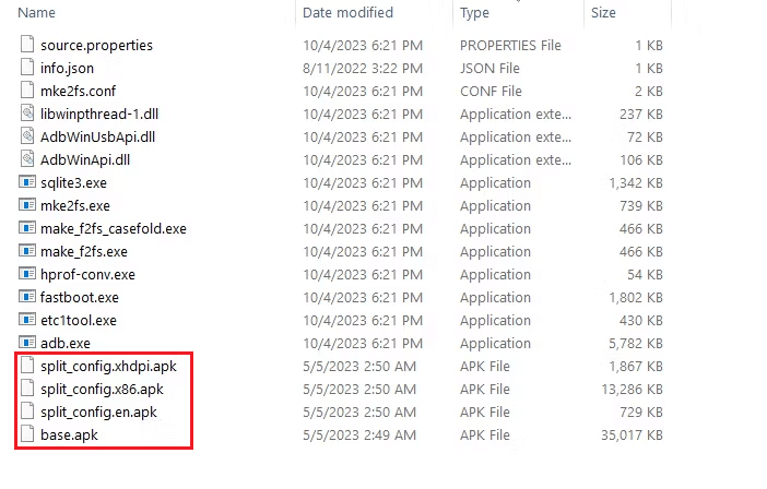 والآن ضمن المجلد الذي قمت بفك ضغطه انسخ كل ملفات APK الموجودة ضمنه والصقها في مجلد Platform Tools كما هو موضح في الصورة.