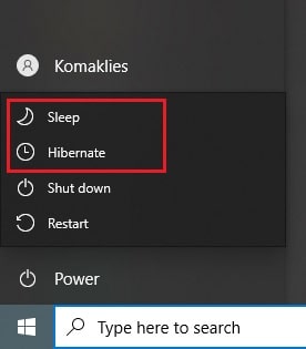 كيفية إضافة وضع الإسبات لقائمة ابدأ