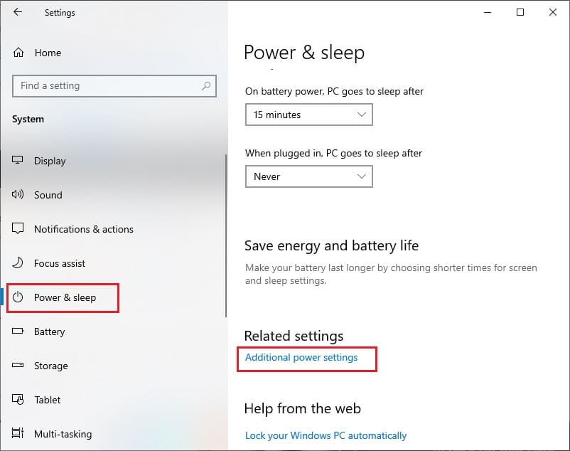بدايةً عليك الدخول إلى الإعدادات (يمكنك ذلك من خلال الاختصار Windows + I) ثم انتقل لـSystem ثم Power and Sleep ثم أخيراً Additional power settings.
