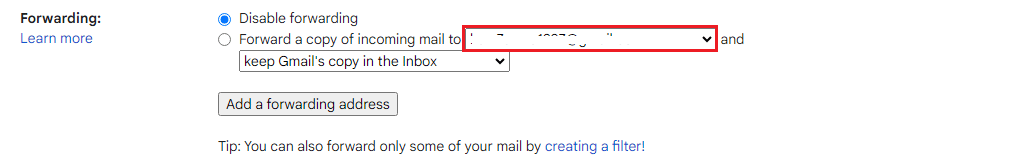 وهذا الخيار مناسب إن كنت تريد الانتقال من إيميل قديم إلى إيميل جديد. حيث يمكنك من تحويل كل الرسائل التي تصلك إلى الإيميل الجديد.