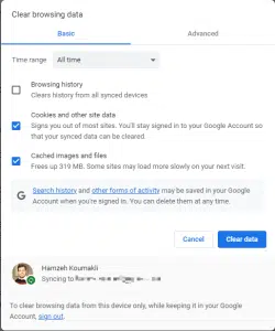 4. حذف ذاكرة التخزين المؤقت للمتصفح