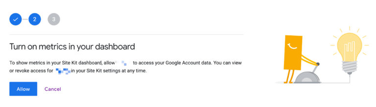 في الخطوة التالية عليك السماح للموقع بالاطلاع على المعلومات في حساب Google بما في ذلك الـMetrics