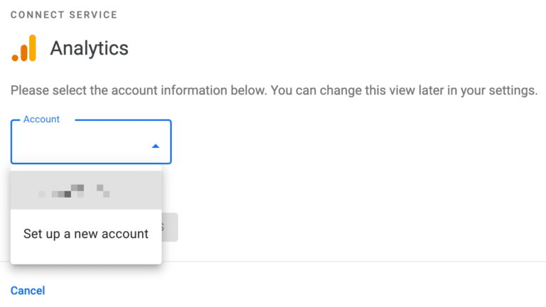ثم اختر حساب غوغل الذي أنشأت عليه حساب Analytics.