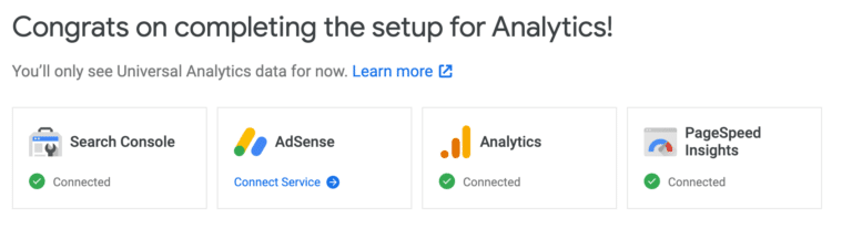 وهكذا تكون قد أتممت إضافة موقعك لـGoogle Analytics، يمكنك إضافة الخدمات الأخرى من غوغل وربطها عن طريق هذه الإضافة لتحصل على كل المعلومات التي تريدها مباشرة من خلال لوحة تحكم ووردبريس.