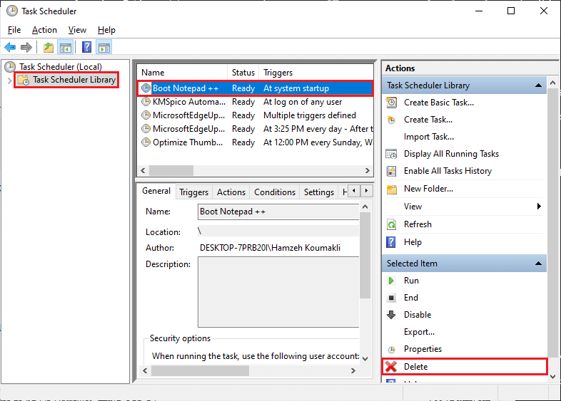 يمكنك الآن الاطلاع على المهام التي أنشأتها وحذفها أو تعطيلها مؤقتاً أو التعديل عليها من خلال Task Scheduler Library كما في الصورة.
