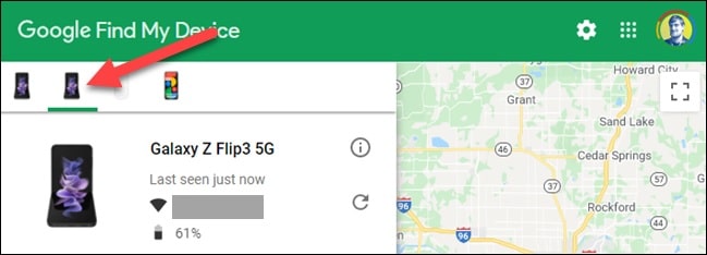 بعد تسجيل الدخول في حسابك في غوغل الذي تستخدمه على الموبايل المفقود ستجد مجموعة الأجهزة التي تملكها في الشريط الجانبي الأيسر. وعند اختيار أحد هذه الأجهزة سيعرض لك غوغل تاريخ آخر اكتشاف لهذا الجهاز وشبكة الواي فاي المتصل بها ونسبة البطارية.