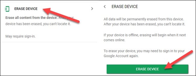 للقيام بذلك اختر Erase Device ثم قم بتأكيد طلبك من خلال النقر على Erase Device مرة أخرى.