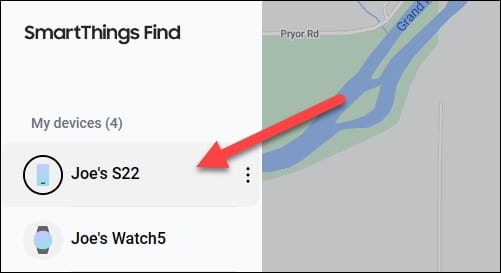 عليك هنا زيارة الرابط التالي smartthingsfind.samsung.com من أي متصفح، ثم تسجيل الدخول في حساب سامسونغ، واختيار الجهاز الذي تريده من أيسر الشاشة. تظهر هنا كل المعدات من سامسونغ بما في ذلك الساعة الذكية والجهاز اللوحي.