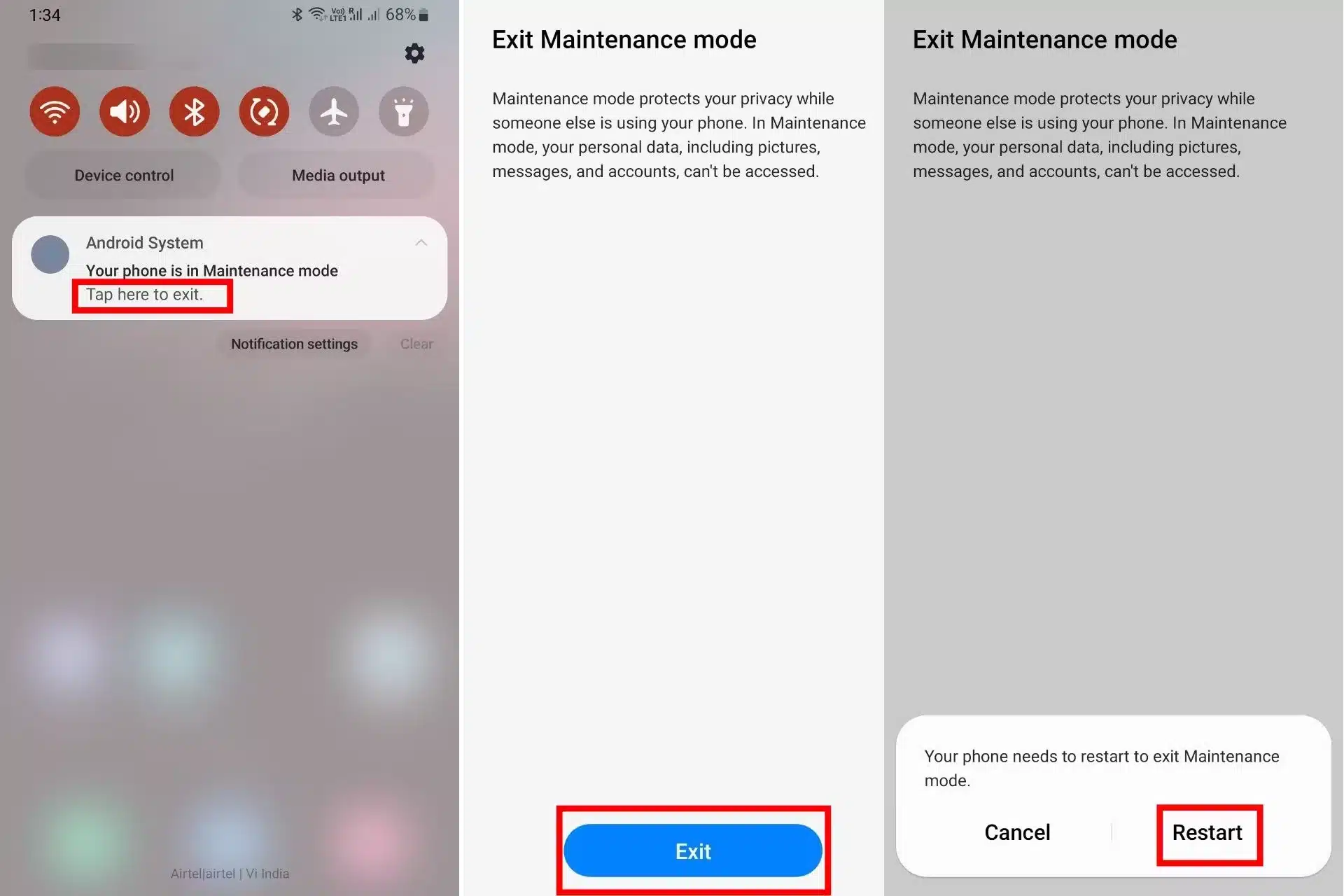 يسمح وضع الصيانة للتقني الذي يعمل على إصلاح هاتفك بالاطلاع على كل الإعدادات والتطبيقات التي تساعده على اكتشاف المشكلة، ولكنه لن يتمكن من الاطلاع على بياناتك الخاصة من صور وفيديوهات ورسائل، كما لا يستطيع إلغاء تفعيل هذا الوضع دون كلمة مرور أو رمز PIN.