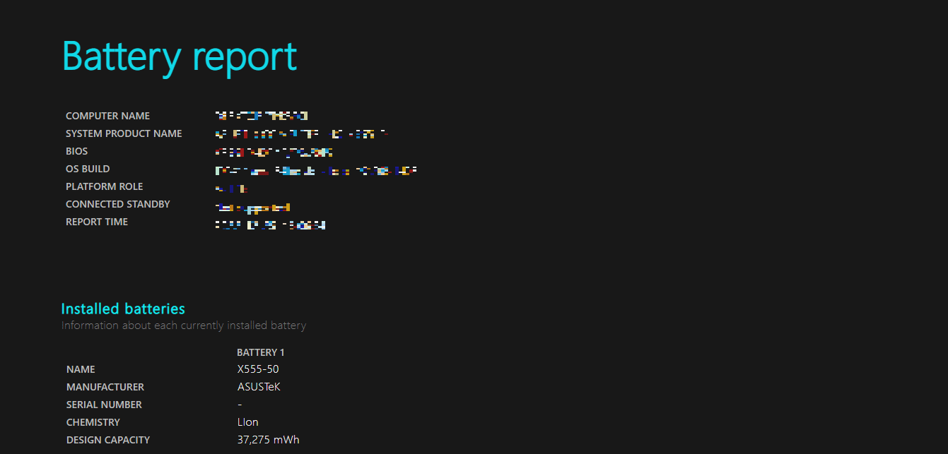 وهكذا سيتم توليد هذا التقرير ويُحفظ في المسار المذكور في الأمر. انتقل إلى هذا المسار وستجد التقرير بشكل صفحة ويب اسمها battery-report. عند فتح التقرير سيظهر بالشكل التالي: